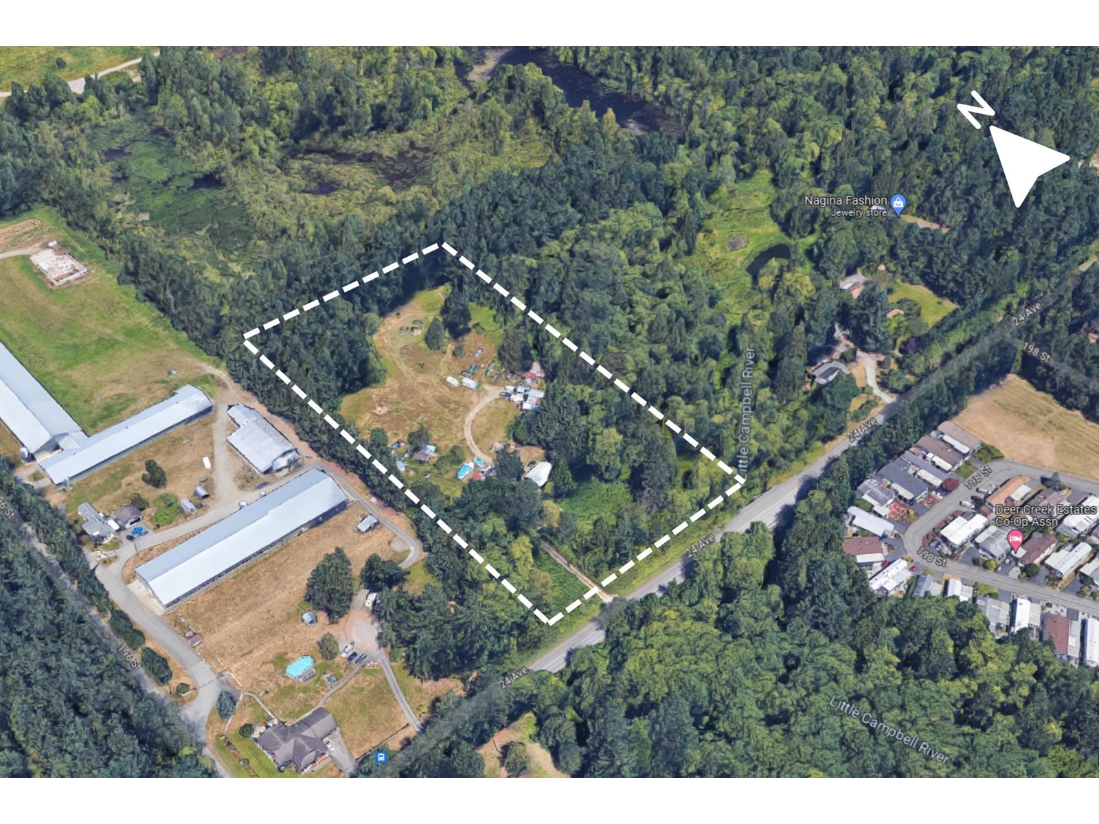 5.5 Acre Development site newly designated as "Employment Lands" in the Brookswood/Fernridge NCP. A Sanitary Sewer line and pump station are being installed across the front by the Township of Langley. Although there is a watercourse through the adjacent property and the Langley Geosource mapping program may still show a small orange coded water course arm on the subject property, the owner has had a QEP ( Qualified Environmental Professional) consultant review the site and confirms there is no such arm or extension of a watercourse on the subject lands. The Consultant estimates approximately 3+ acres would be buildable. Please do not walk on the property and/or disturb tenants without appointment. (id:9345)...