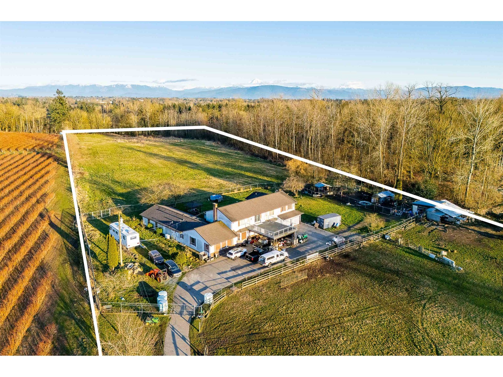 18.64 ACRES WITH 2 HOMES AND 2 LARGE BUILDINGS. 6,158 SQ/FT Home with 4 bedrooms and 5 bathrooms. Amazing mountain & valley views. The second home is 1,800 SQ/FT with 4 bedrooms and 2 bathrooms. The property also includes a 6,600 SQ/FT barn with a workshop and a 13,000 SQ/FT Building. The property is high, dry, gated, fenced & cross-fenced. Great location, close to all amenities, with easy access to Fraser Highway, Highway #1, and the USA Border. (id:9345)...