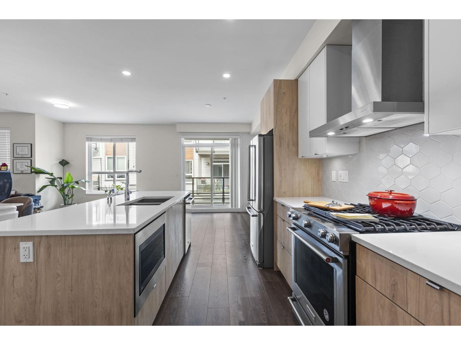Welcome to Luxia in Willoughby! 3 storey townhouse featuring 3 Bedrooms + 3 Bathrooms with 1,600 Sq Ft of living space. Modern design with open concept living room & gourmet kitchen featuring an island with quartz countertops, pantry, and stainless steel kitchen aid appliances. Powder room on the main and laminate flooring throughout. Master Bedroom features a walk-in closet and ensuite bathroom with his & her sinks. Upgrades include gas hookup on the patio, laundry sink & cabinetry and epoxy flooring in the double garage. Total of 3 patios including the amazing ROOF TOP deck ideal for entertaining with stunning views. Located close to shopping, recreation, schools, Hwy 1 and much more. Club House includes a fitness studio and social lounge/party room. Located in the heart of Langley! (id:9345)...