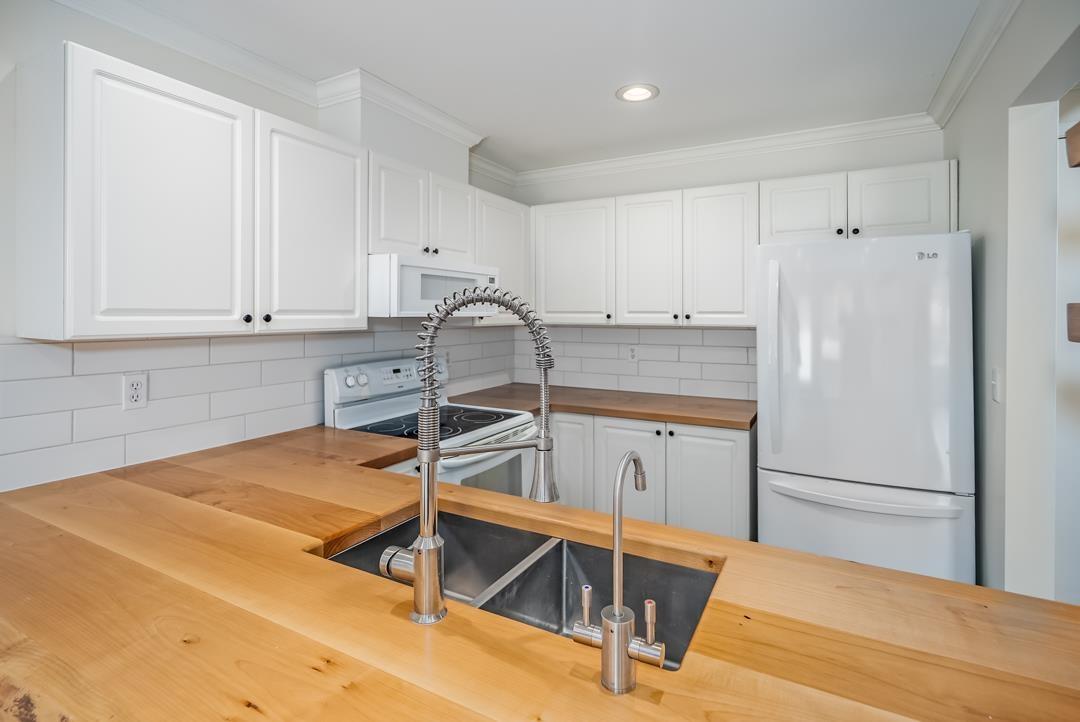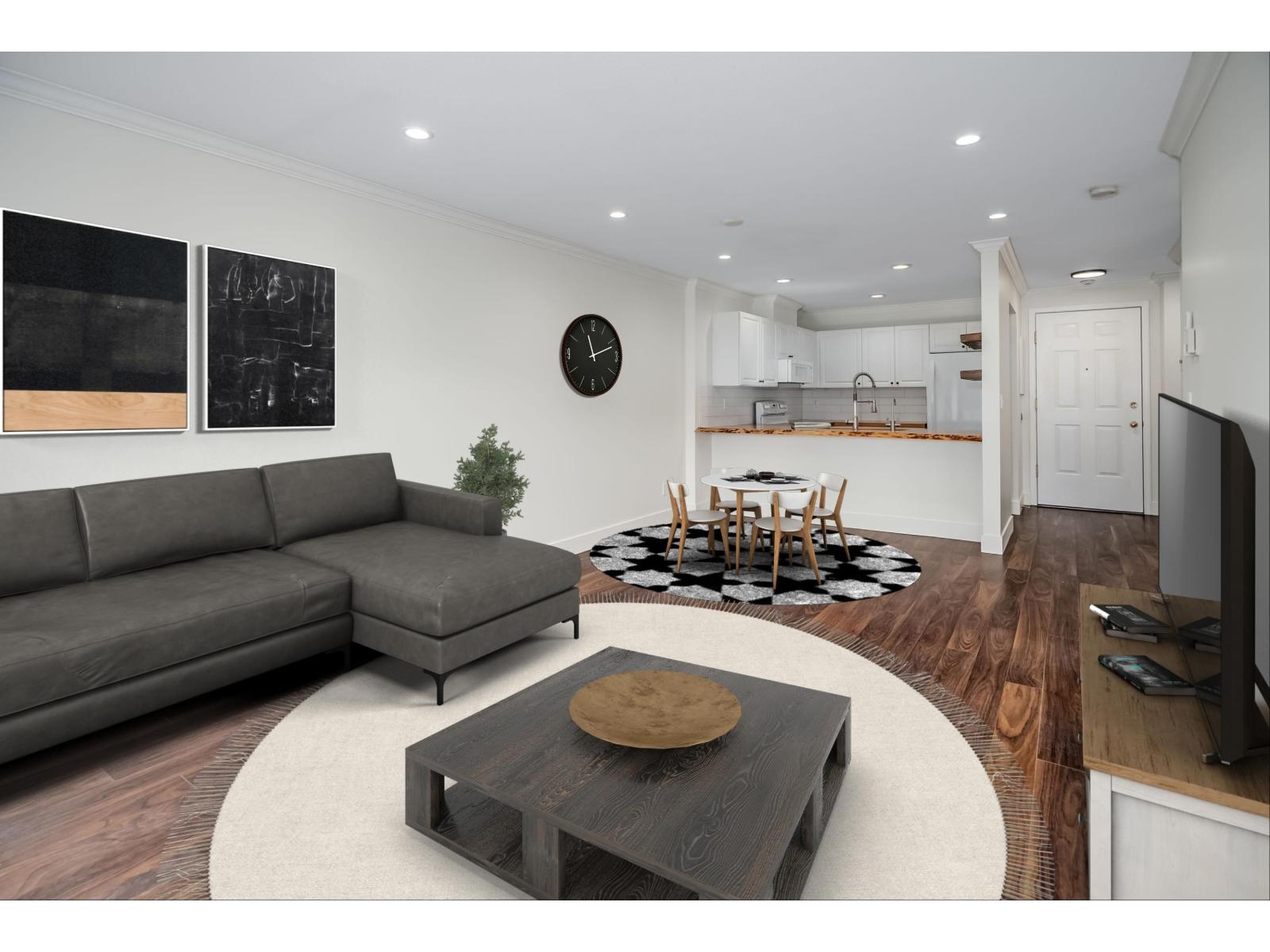 The best opportunity to own in Fort Langley! A beautiful 1 bed 1 bath unit with 733 sqft of living space on the quiet side of the building! Open concept kitchen w/ live edge butcher block counters, bar seating, new back splash, great cabinet space + instant hot water tap (filtered). Fresh paint throughout! One of the only units with AC! Large living room with lots of natural light + Updated pot lights throughout! HUGE primary bedroom w/ room for king bed + more and a Walk in closet! Beautifully updated full bathroom! Laundry room with tons of storage space! 1 parking + storage locker! Great building, roof done 2021 and most piping in building replaced to pex! All of this right in the heart of Historic Fort Langley! Walk to all shops, breweries, river, trails, parks, restaurants and more! (id:9345)...