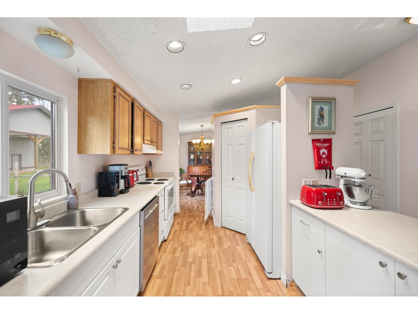 Clear, flat, 1-acre property with large, new shop & custom-designed modular home on crawl space offers perfect blend of style & functionality. Vaulted ceilings in living, dining, kitchen, & family room with gas fireplace create roomy, open layout with multiple activity or lounging areas. Primary suite boasts luxurious 5-pc ensuite. Enjoy sunsets on west-facing sundeck, through double French doors. Updates include vinyl plank flooring & septic system. Lots of parking available with detached double carport plus recently built detached double garage/shop & over-height carport with finished office & storage above, including 10' ceilings, upgraded electrical & gas services, 2-pc washroom, mini split heat pump (heating and cooling) & RV parking with hook-ups on both sides. (id:9345)...