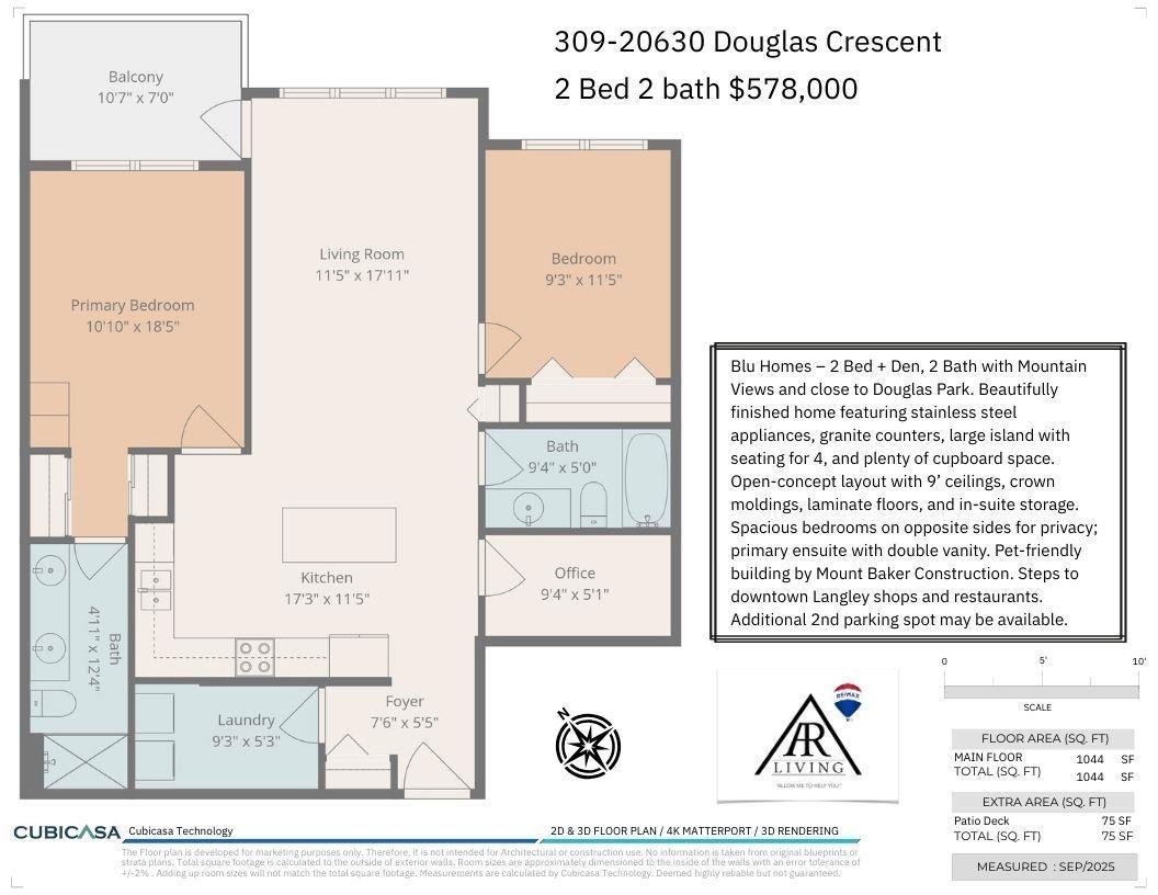 This Apartment is for sale in Langley and its located at 309 20630 DOUGLAS CRESCENT, Langley, British Columbia V3A4B8. This property's asking price is $578,000. It has 2 Bedroom(s) and 2 bathroom(s). This property has 1044 sqft covered area.