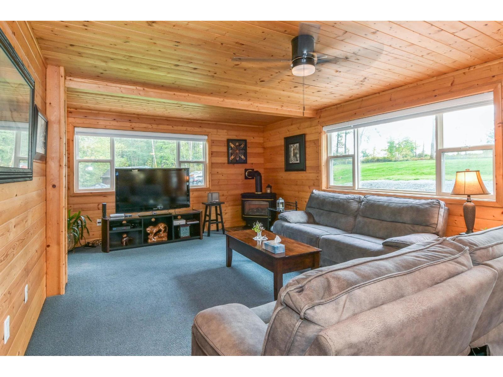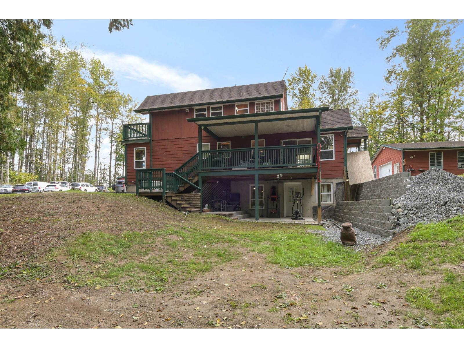Calling all car enthusiasts! Are you looking for a unique property that's private, peaceful, & has room for all your toys? This one-of-a-kind home sits on 4.26 acres in desirable Glen Valley. Featuring a huge 39' x 23' garage, plus three additional outbuildings, all with power & plenty of open parking. The home offers interlocking pine wood panel walls, an updated kitchen with SS appliances & a gas stove, newer windows that capture beautiful natural light & views of the property, carpet, an alarm system, a newer washer/dryer, a newer hot water tank, & a generator. The primary bedroom is impressive, boasting vaulted ceilings, over 500 sq. ft. of space, a spacious walk-in closet, & an ensuite with a Jacuzzi tub. Enjoy summer evenings relaxing on your private balcony. Downstairs includes a games room, a flex room perfect for guests, cold storage, & ample additional storage throughout. Other updates include a newly paved driveway, septic cleaned in 2025, & well over 360 feet. Call today to view. (id:9345)...