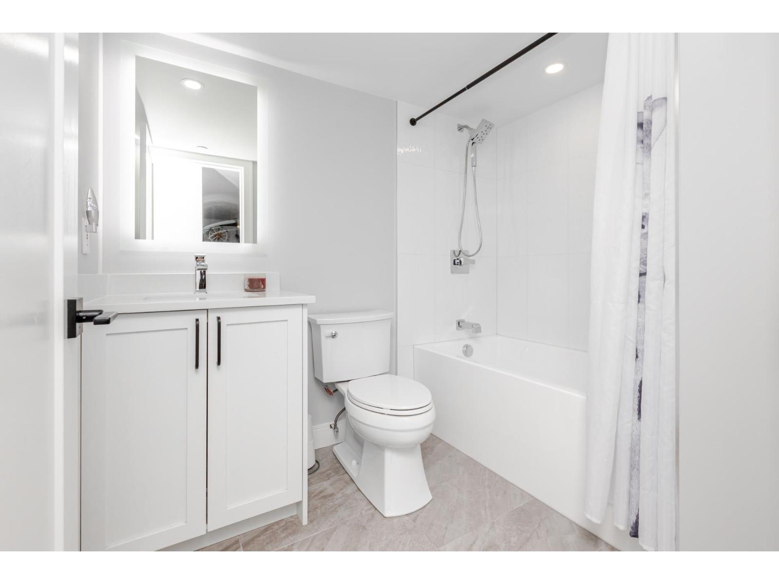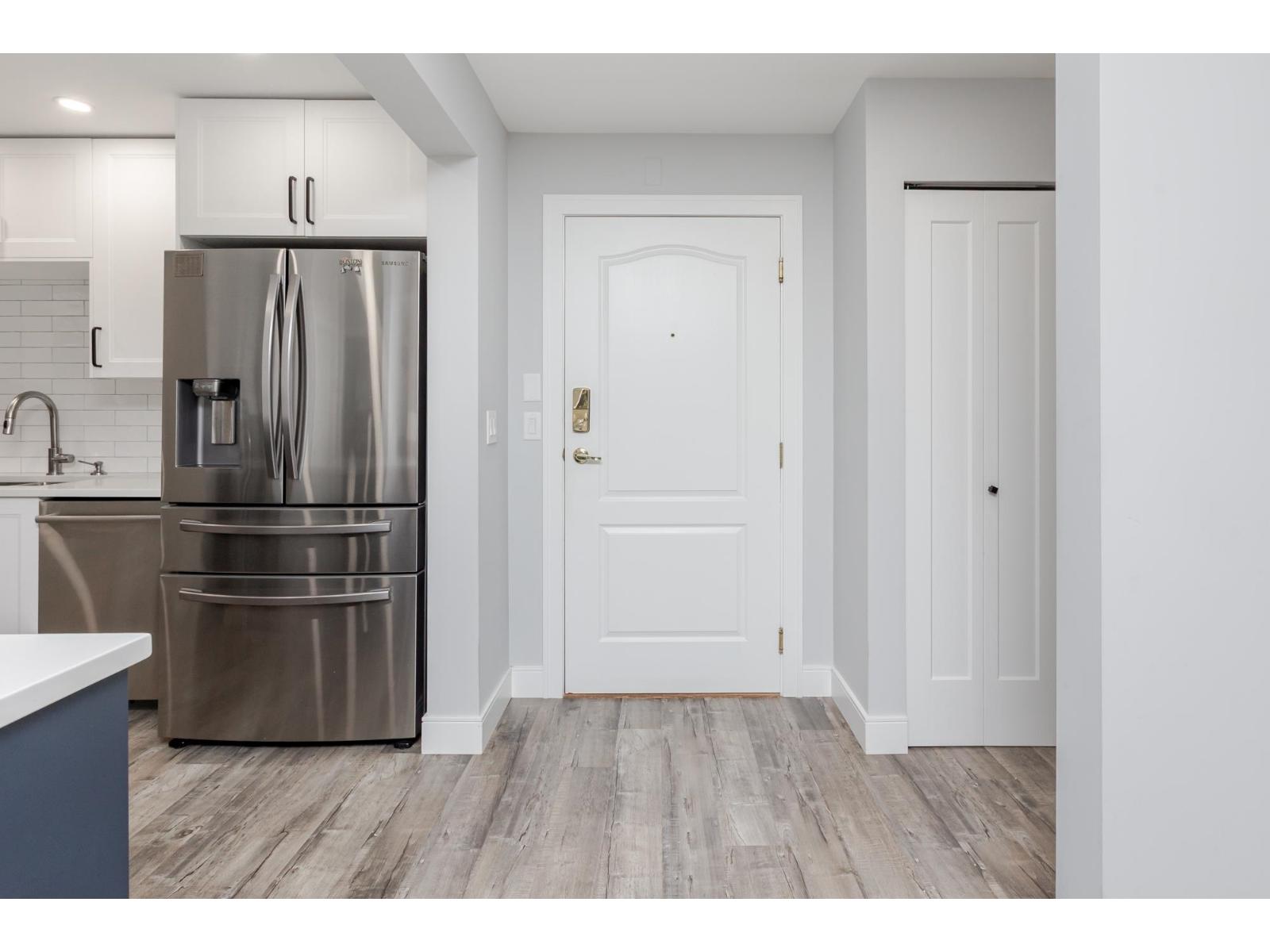 Welcome to Bayberry Lane! Nestled in a quiet Langley City neighbourhood walk to shops, amenities & close to several parks & walking trails. Elevated above ground condo with over 1000 sq ft of living space with Primary & 2nd bed & bath at opposite ends for total privacy. Primary easily fits a king bed, has his/hers walk through closets & ensuite with DBL shower. Totally renovated with a showstopper kitchen featuring S/S appliances, elegant 2 tone shaker cabinets, tons of quartz counters including huge peninsula. Kitchen extends to the large laundry with additional cabinets & side by side modern washer/dryer. Open plan dining & living room with cozy gas fireplace & access to the large balcony, perfect for entertaining, overlooking the courtyard & water feature. Pet friendly for dogs & cats. (id:9345)...