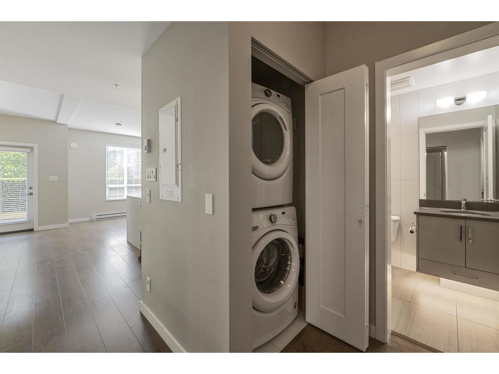 Welcome to Elements in the heart of Willoughby! This 1 bed, 1 bath condo on the first floor offers a bright, open layout with 9-ft ceilings, large windows, and a modern kitchen with quartz counters and stainless steel appliances. Enjoy in-suite laundry, a private balcony, and 1 parking stall (#347) plus a storage locker (#C-7). Steps to shops, transit, and schools with access to a top-tier clubhouse. (id:9345)...