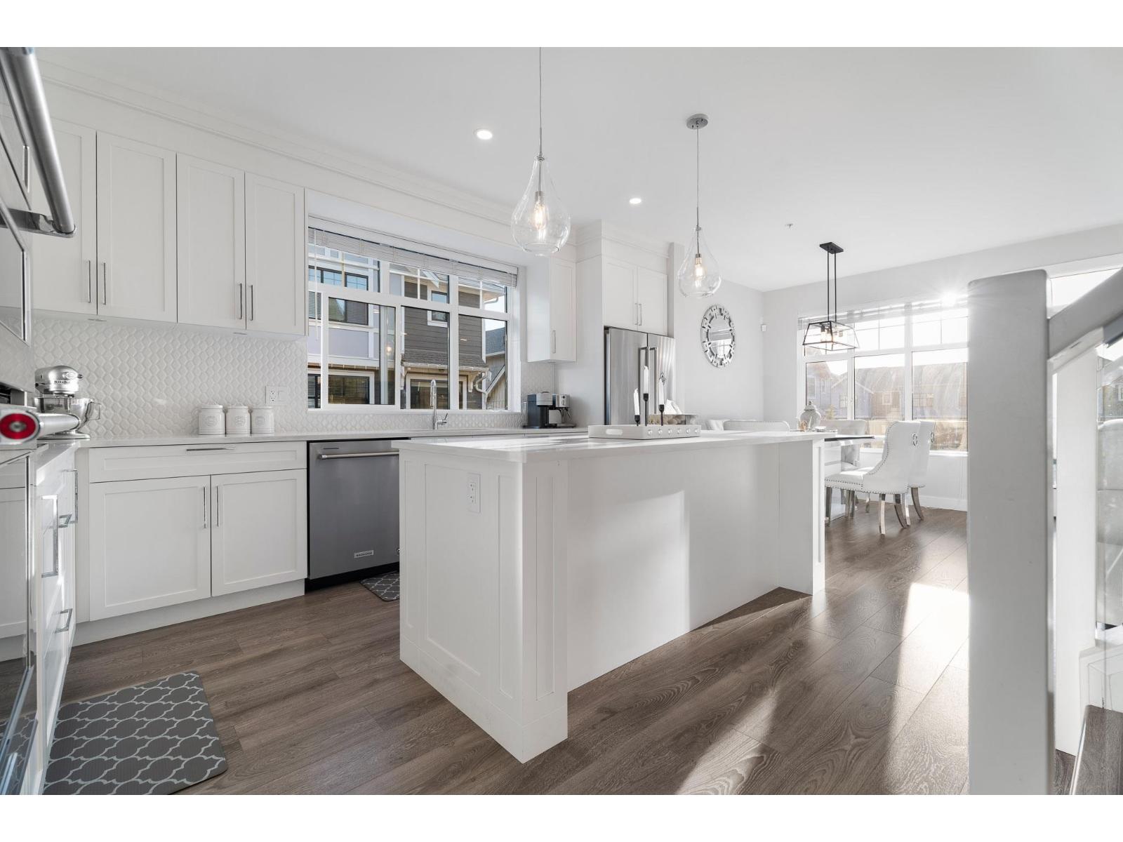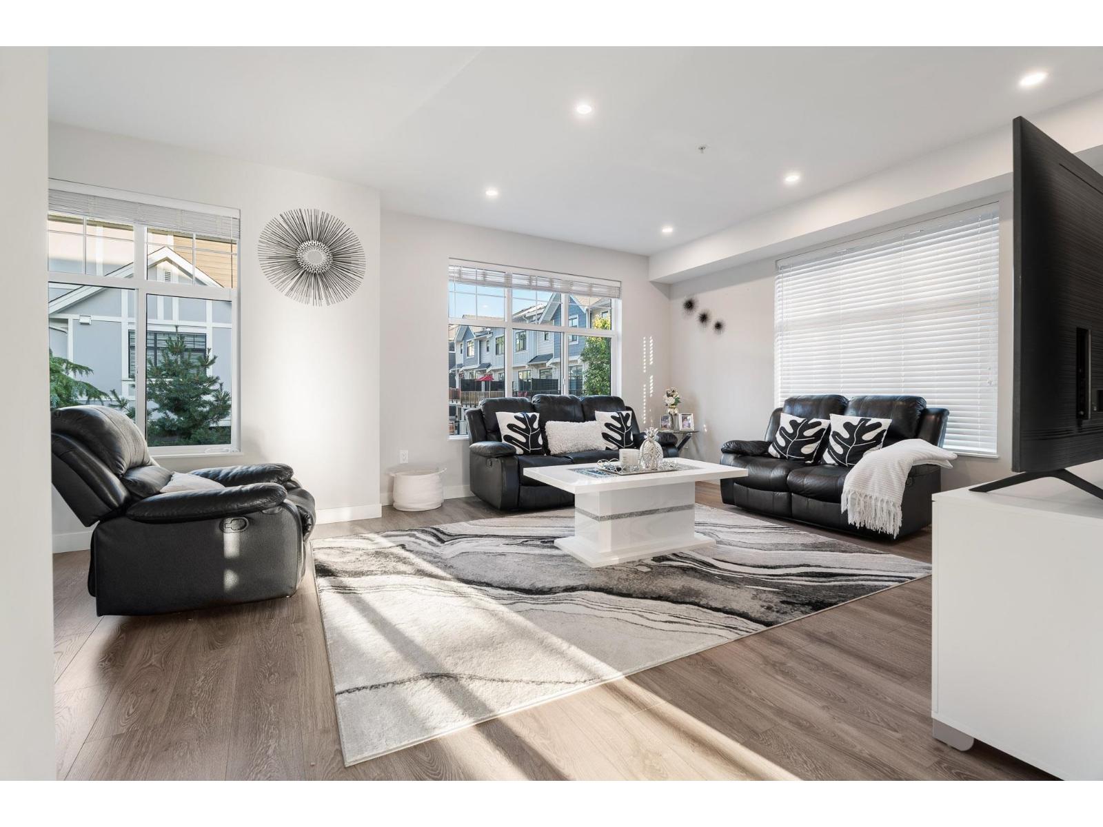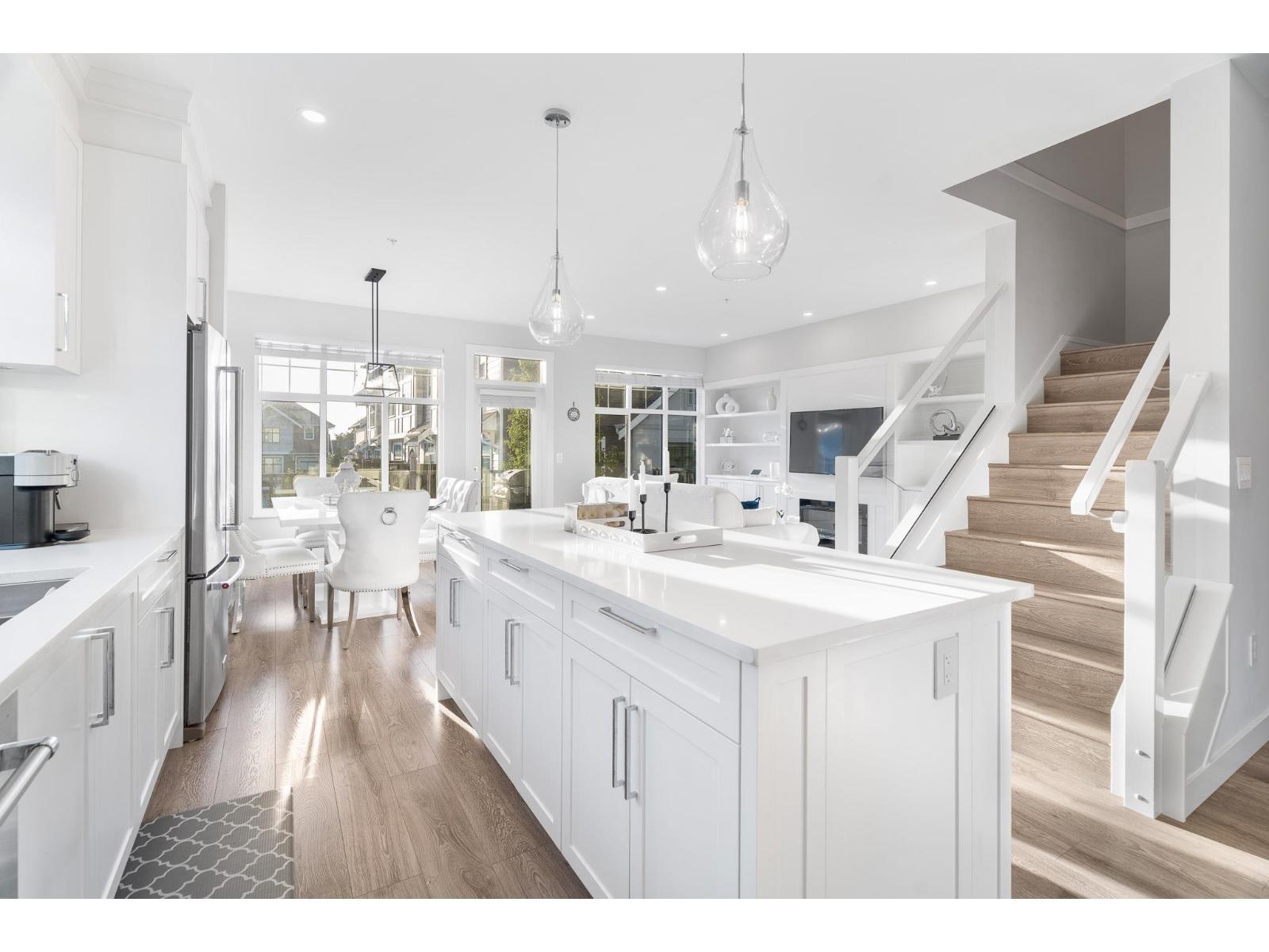 Bright and open extra-wide CORNER townhouse with plenty of natural light! With ultra-low strata fees, this beautifully maintained 4 BED 4 BATH air-conditioned home offers three bedrooms upstairs, including a spacious primary retreat with spa-inspired ensuite, a full laundry room, and two additional bedrooms that both easily fit queen beds. On the entry level, enjoy a flexible space with a bedroom, full bath, office/den, and its own separate entrance to the backyard-ideal for guests or extended family. The main level boasts a chef's kitchen with a huge island that flows seamlessly to the dining and family areas, perfect for gatherings, plus a second living room over 300 sq. ft. The lower level offers an oversized TWO-car garage with plenty of storage. (id:9345)...