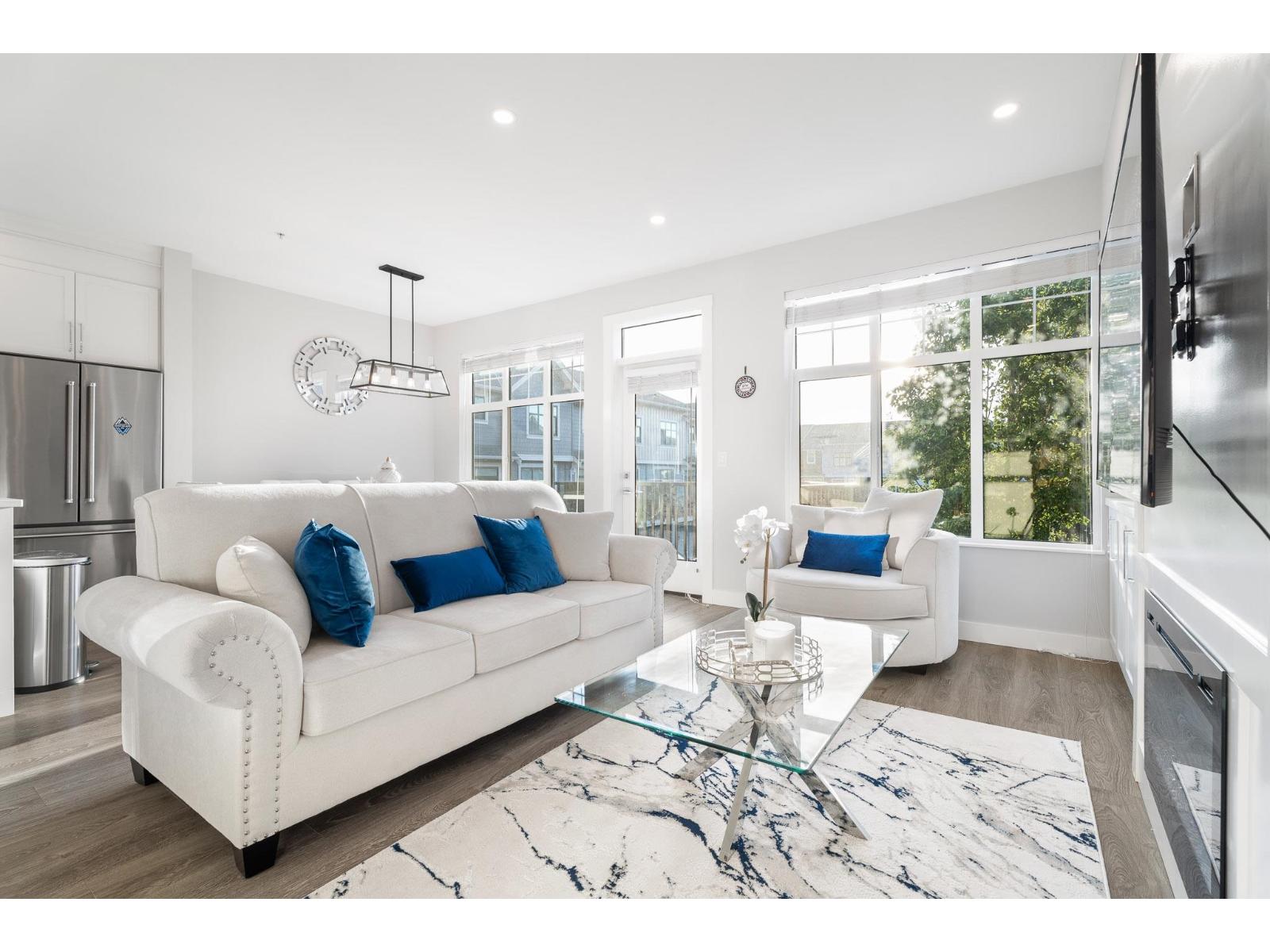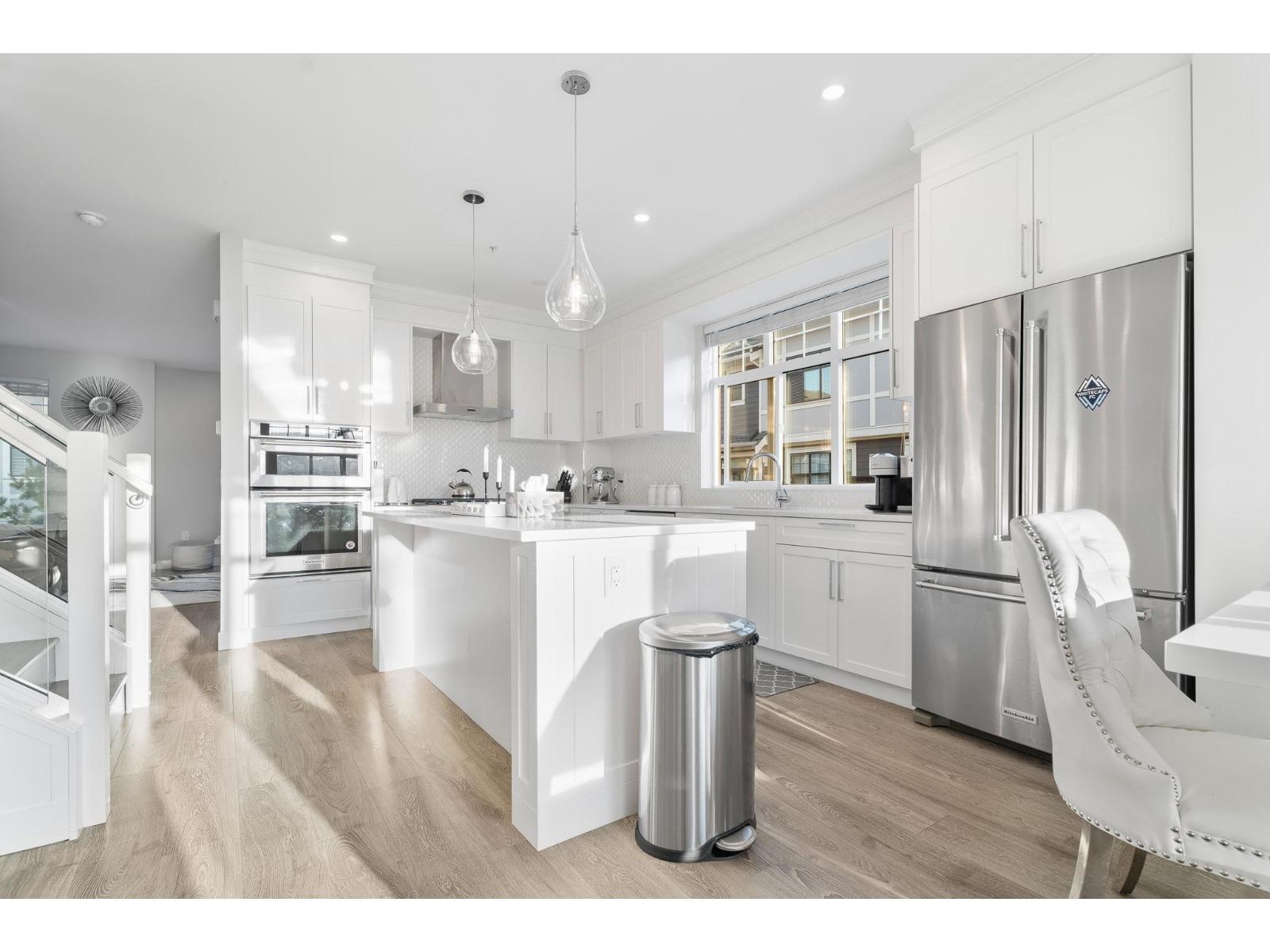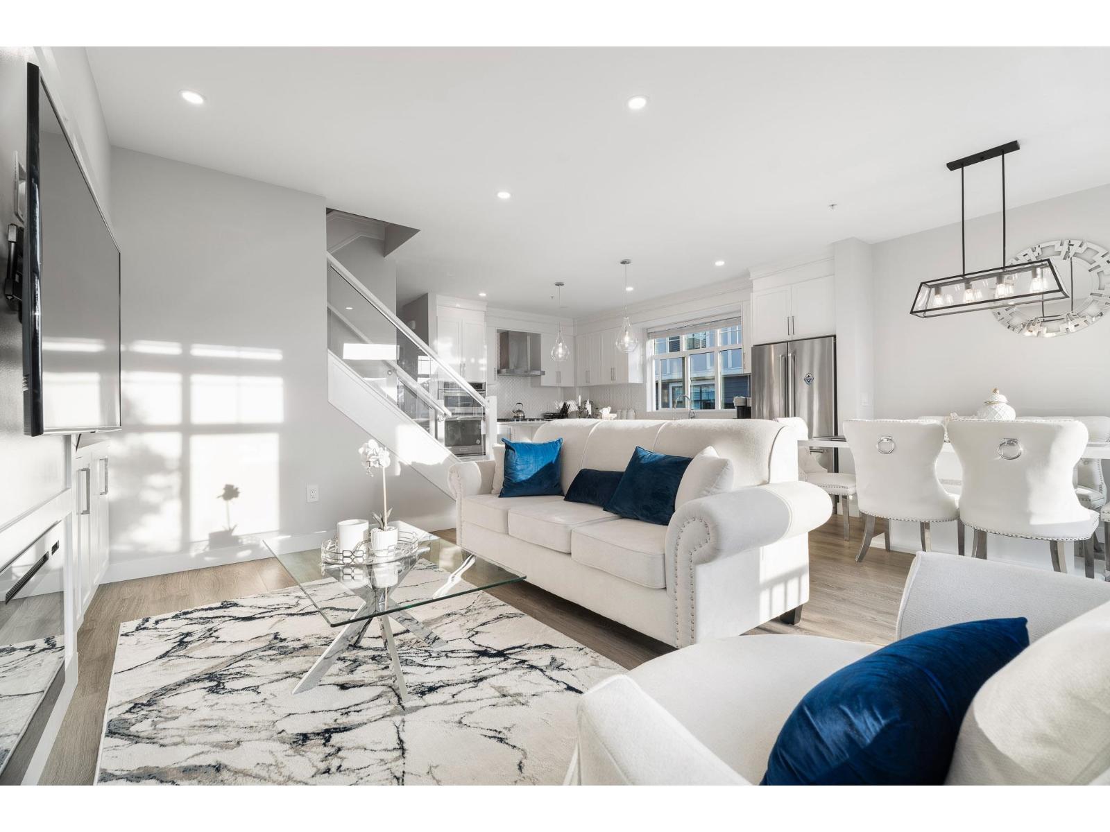 Bright and open extra-wide CORNER townhouse with plenty of natural light! With ultra-low strata fees, this beautifully maintained 4 BED 4 BATH air-conditioned home offers three bedrooms upstairs, including a spacious primary retreat with spa-inspired ensuite, a full laundry room, and two additional bedrooms that both easily fit queen beds. On the entry level, enjoy a flexible space with a bedroom, full bath, office/den, and its own separate entrance to the backyard-ideal for guests or extended family. The main level boasts a chef's kitchen with a huge island that flows seamlessly to the dining and family areas, perfect for gatherings, plus a second living room over 300 sq. ft. The lower level offers an oversized TWO-car garage with plenty of storage. (id:9345)...
