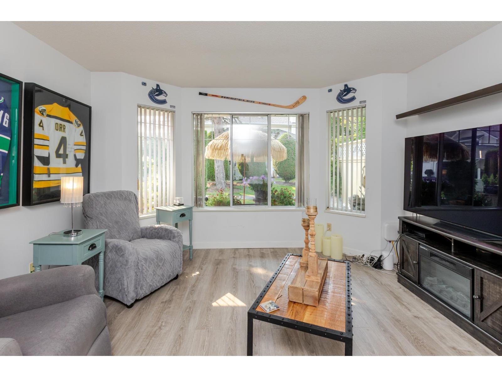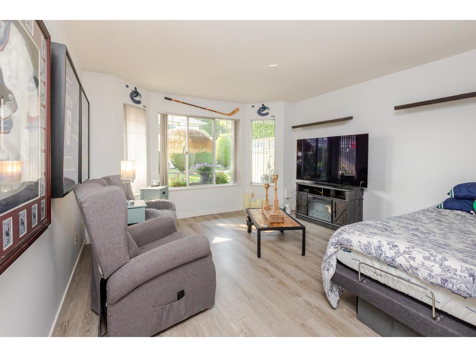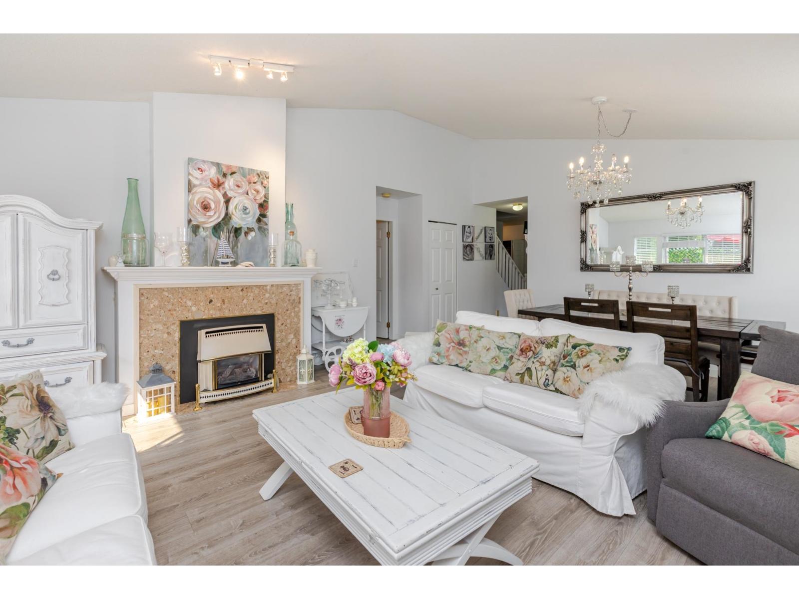 Attention downsizers! This beautifully updated END UNIT townhome offers 3 bedrooms, 2.5 bathrooms, & over 1,600sf. of bright, open living space - making it feel more like a detached home. Tastefully updated w/light laminate flooring, s/s appliances, quartz counters in the kitchen, mini split A/C, & newer washer/dryer. Other features include soaring vaulted ceilings & a cozy gas fireplace. Primary bedroom conveniently located on the main floor w/spacious ensuite + a updated powder room & a double side-by-side garage add everyday comfort. Large windows throughout flood the home w/natural light. Step outside to a generous southwest-facing patio that backs onto a serene greenbelt. Enjoy the complexes fantastic amenities including a clubhouse, putting green, hot tub, and outdoor pool. (id:9345)...