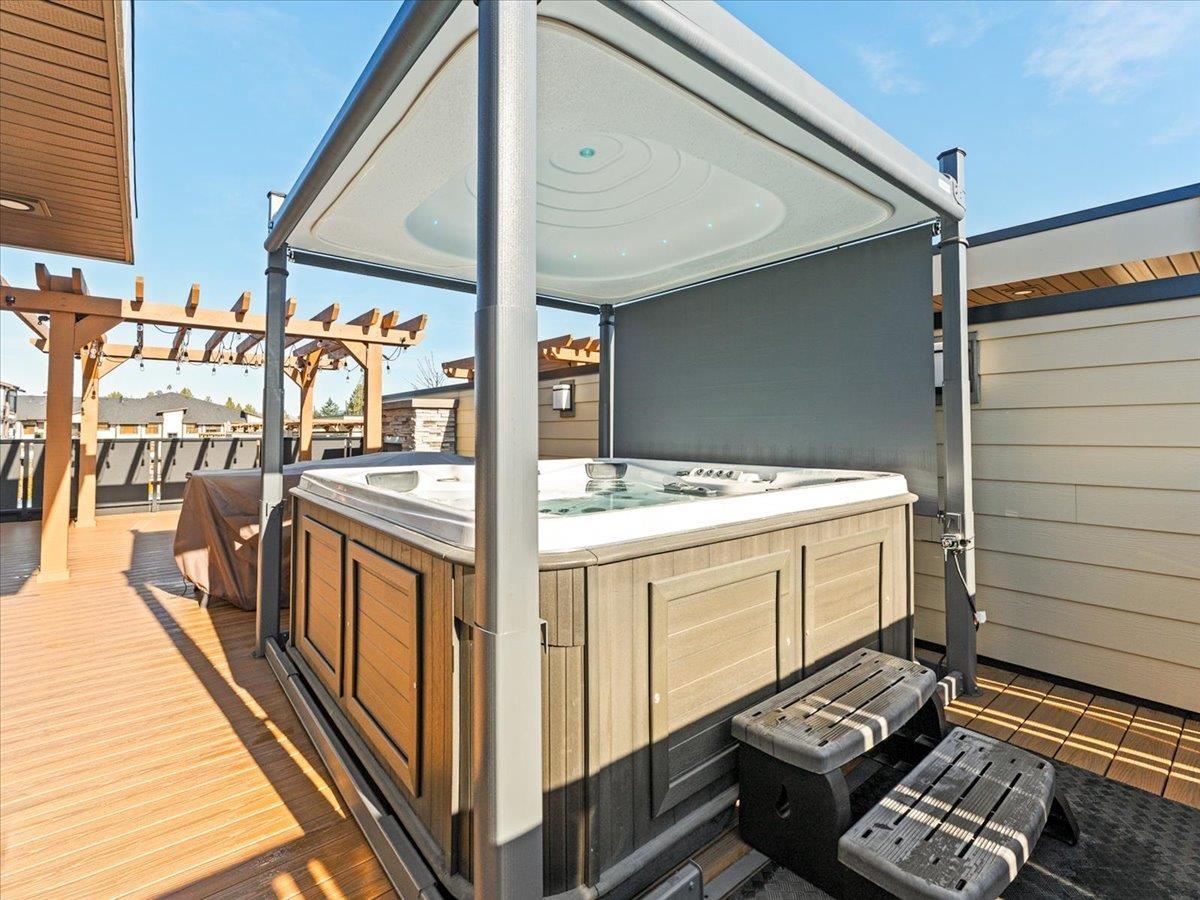 Location! Location! Location! Exceptional 4 bdrm, 5 bth t/h END UNIT spanning 3400sf & packed with luxury. A PRIVATE ELEVATOR provides access from the basement to the exclusive roof deck. The main level offers a chef's kitchen with Miele & Bosch appl & quartz counters. Entertain indoors & out with a Lumon-enclosed balcony & 700+ sqft roof deck complete with hot-tub, gas fireplace, pergola, gas BBQ & bar sink. Enjoy full smart-home automation, heated bth floors, motorized blinds, high-efficiency furnace, heat pump AC, solid core doors, custom closets, built-ins & designer lighting thru out. EV charger plus parking for 4. Ideally positioned in the prime spot of the complex with quick access to Hwy 1. Quiet, private, one-of-a-kind, too many luxuries to list here - book your private appt! (id:9345)...