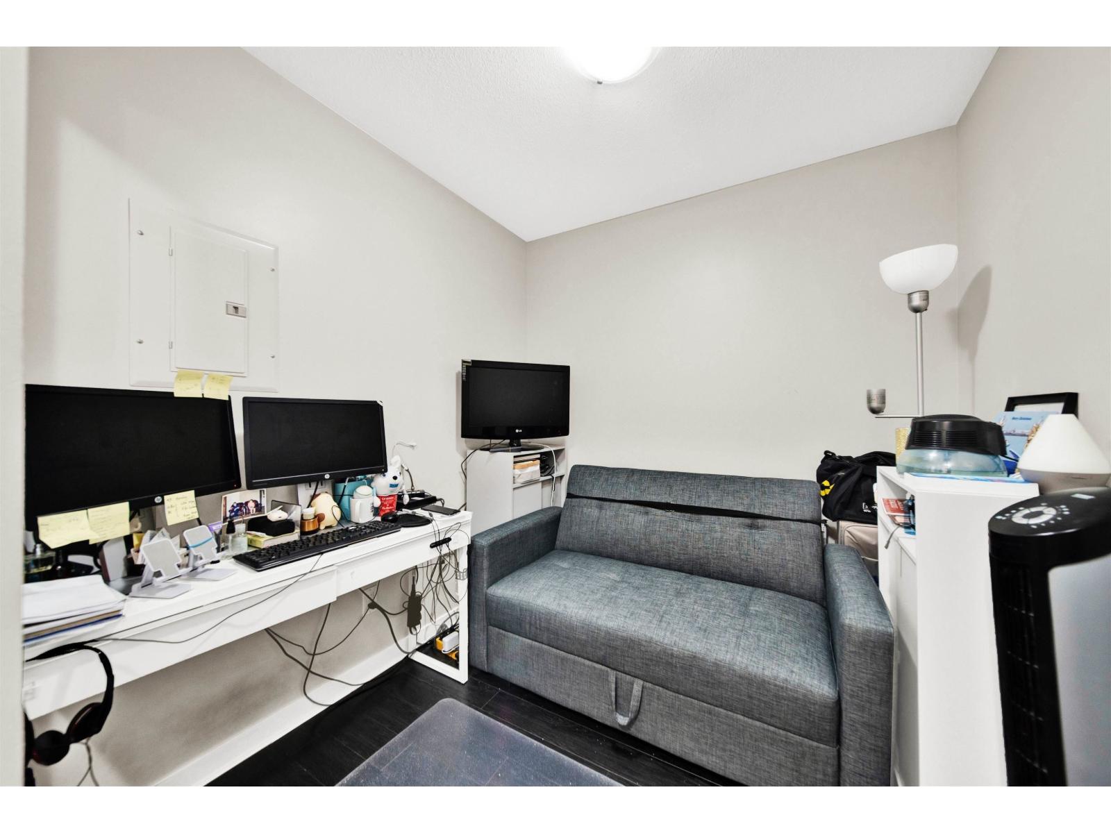 CORNERSTONE, a quality Marcon build, offers a bright 1-bedroom + den on the 3rd floor with southern exposure. Featuring contemporary decor, quartz counters, an open floor plan, a floating fireplace, laundry, and ample storage, it also boasts a generous covered deck for year-round use. The bedroom includes a walk-in closet with updated storage and a walk-through to a four-piece bath, while the den is ideal for a home office. The underground parking stall comes with a new bike rack, storage locker, and plenty of visitor parking, plus a new E/V charging station and an onsite caretaker. Located just a short walk from Safeway, Starbucks, restaurants, and the future Skytrain, this well-managed building welcomes 2 pets (no size restriction) and rentals. (id:9345)...